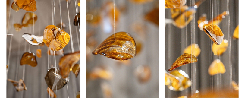 The new BROKISGLASS concept for 2025, Bloom, features glass segments levitating in an airy installation. Its organic morphology evokes the feeling of drifting autumn leaves or delicate flower petals.