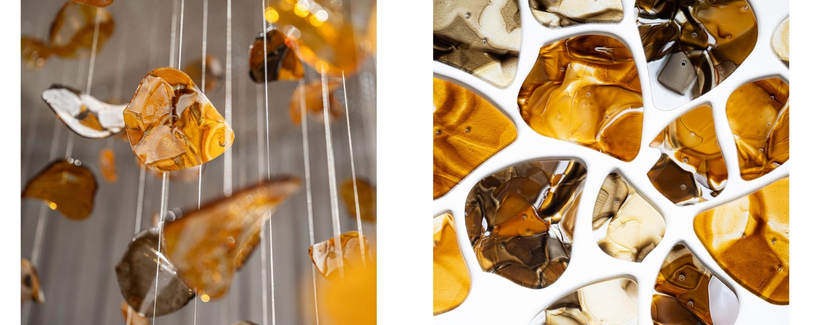Each individual segment is crafted by recycling glass fragments of various colours and shapes, making every part of the composition a unique, non-repeating original.