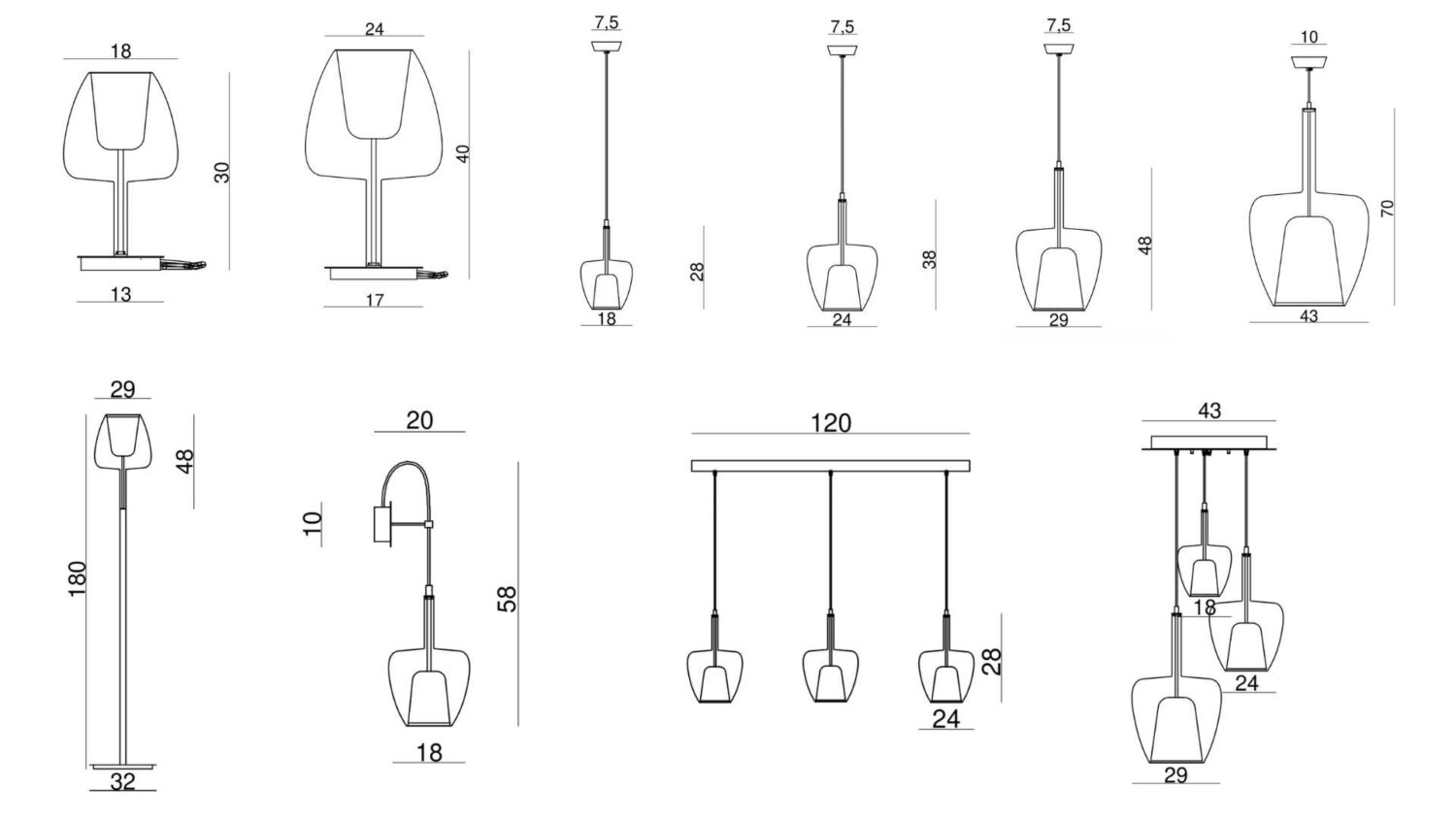 The finish is another key highlight of the collection. Clients can choose from elegant color-tinted glass or a special metallic finish, developed exclusively by the brand. The metallic version has a unique feature: when the light is switched off, the inner bulb becomes invisible—transforming the lamp into a sculptural decorative object. This thoughtful detail adds a layer of visual intrigue and elevates the lamp beyond its function, making it a true piece of art.