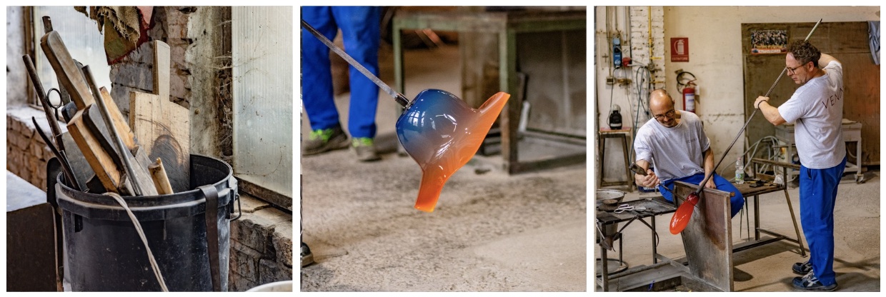 Space Edition had the privilege of visiting Venini’s historic glassworks on Murano, founded in 1921 and one of the few original factories still operating on the island. During our tour, a master artisan demonstrated the Fantasmino technique, Venini’s best selling collection in which molten glass is skillfully shaken to form graceful patterns.
