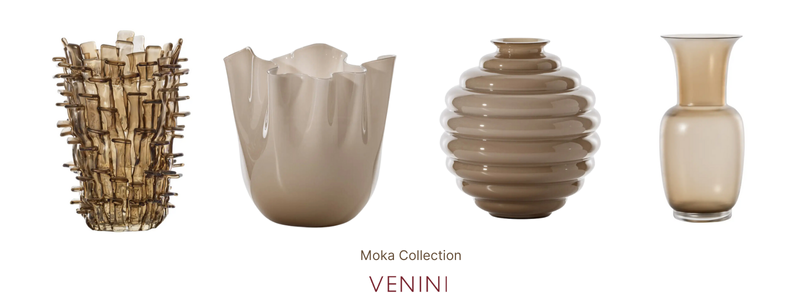 Venini has curated a stunning collection in Mocha Mousse, featuring masterpieces such as Ritagli, Fazzoletto, Deco Honeycomb, and Opalino. Each piece is crafted from Murano glass, hand-blown in Venice, transcending the realm of art to become treasures for the heart. These creations are presented in the most perfect color of 2025, combining timeless elegance with contemporary significance.