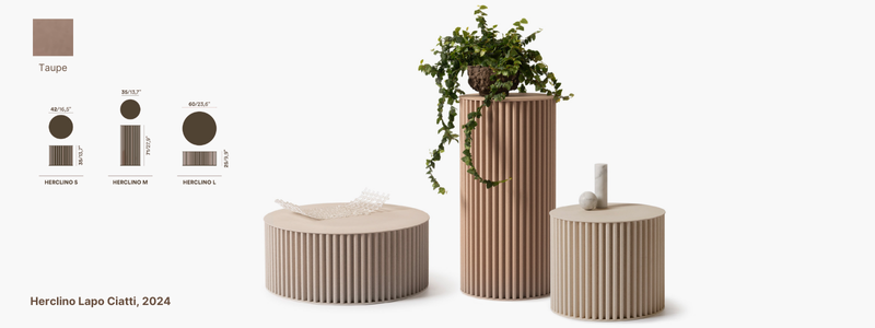 The Herclino Coffee Table in Mocha Mousse from Opinion Ciatti, part of the Hercle Collection designed by Lapo Ciatti, was created with the intention of combining the timeless charm of ancient Greece with avant-garde materials in an everyday object. The result reflects Opinion Ciatti’s focus on sustainability. The Mocha Mousse color evokes an ancient feel while still being modern and visually refreshing.