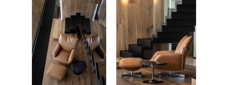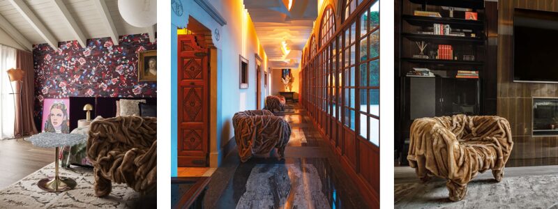 The armchair is the Grinza from Edra, designed by the world-renowned Campana brothers. The main inspiration behind this piece comes from their passion for experimenting with unconventional materials and shapes, reflecting a design spirit that doesn’t adhere to traditional forms or conventions. They often choose materials with diverse qualities, such as ropes, leather, or recycled materials.
