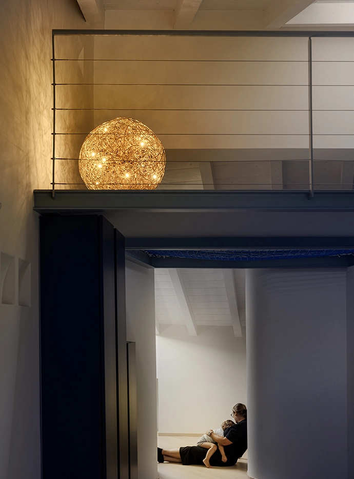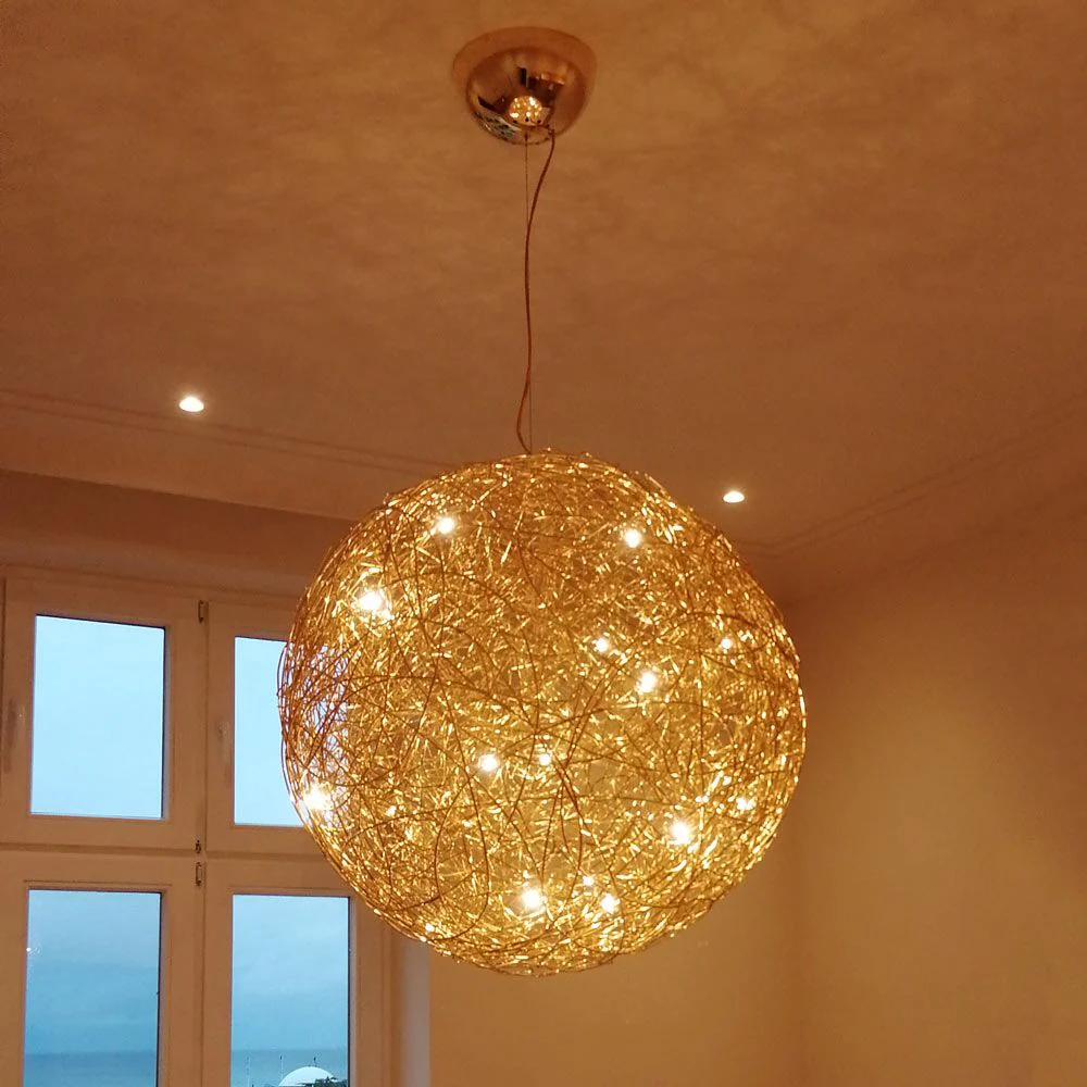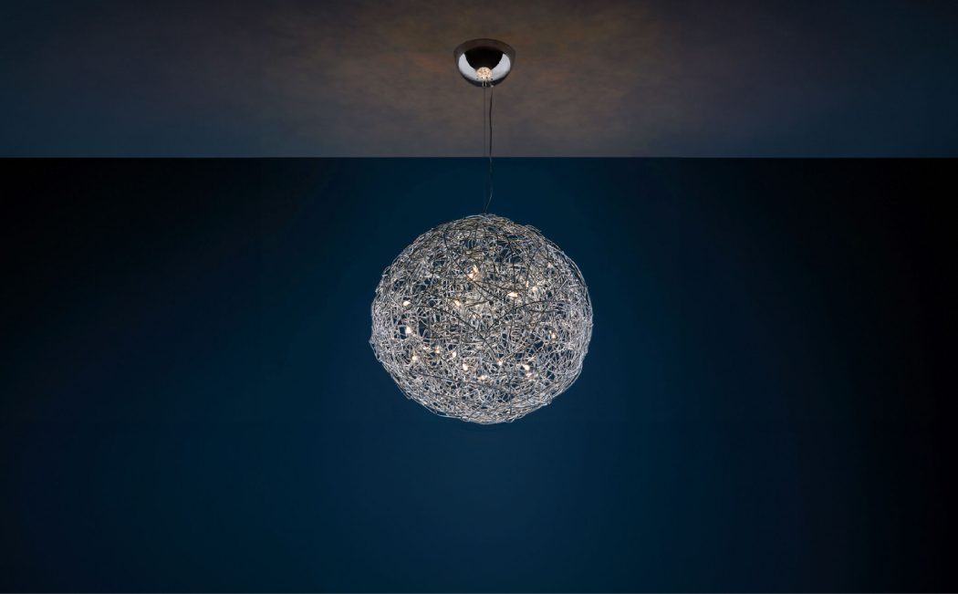 Fil de Fer is a lighting fixture made of shaped, woven aluminium wire, which is lit on the inside by tiny bulbs. Designed and made by Enzo Catellani, it is the creation closest to his heart. Developed almost twenty years ago for a special commission, it was never used for that particular project and was hung up in his workshop. Each time it was switched on, it enchanted everyone with its special, magical atmosphere. Enzo Catellani decided then to continue working on it. The lamp was later placed on the market and quickly became the most iconic lighting fixture in the Catellani & Smith range.