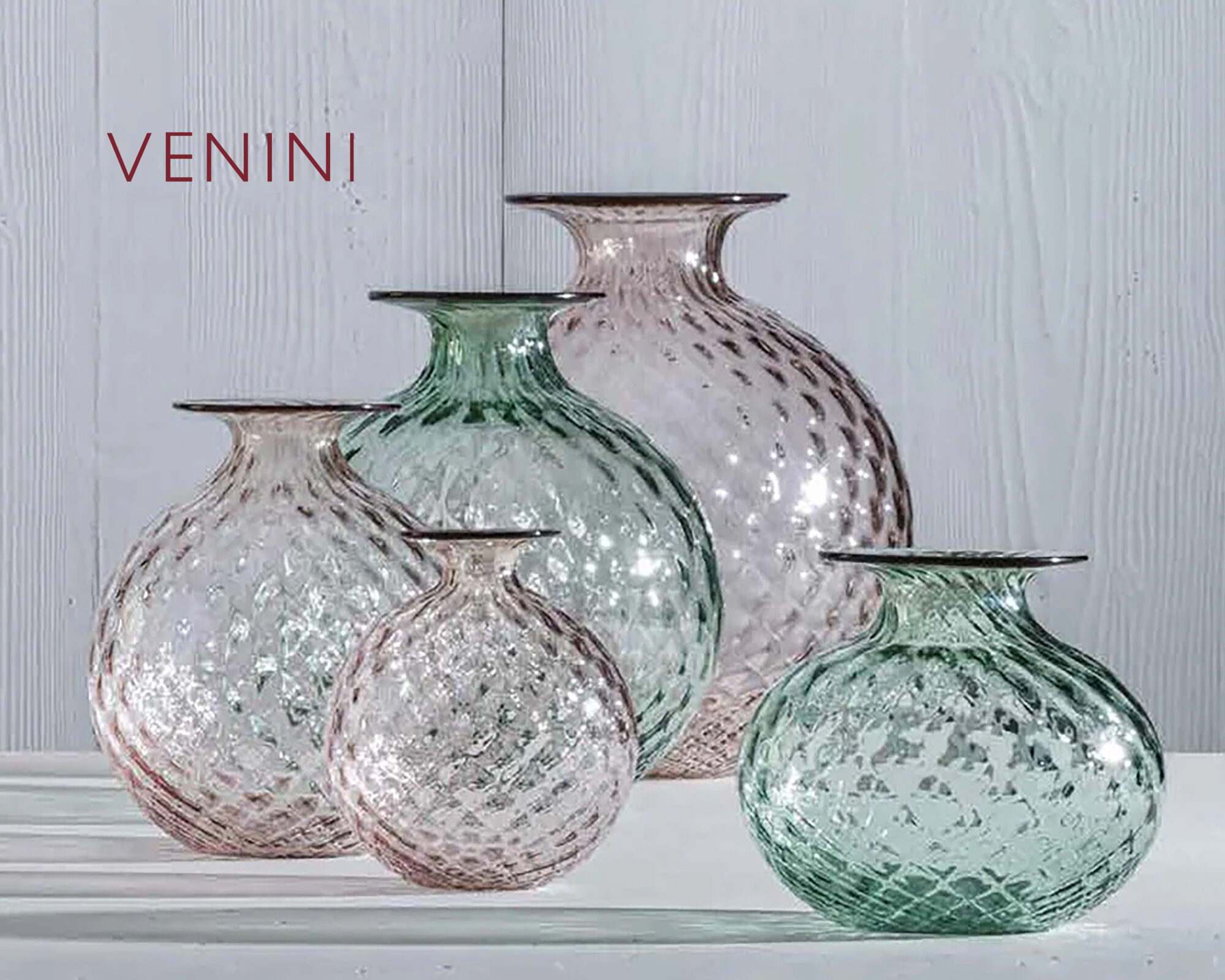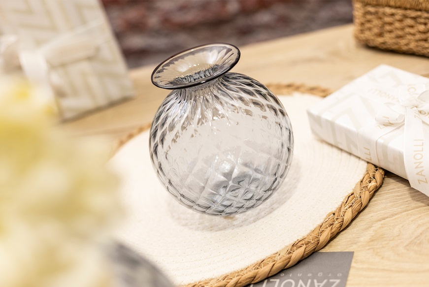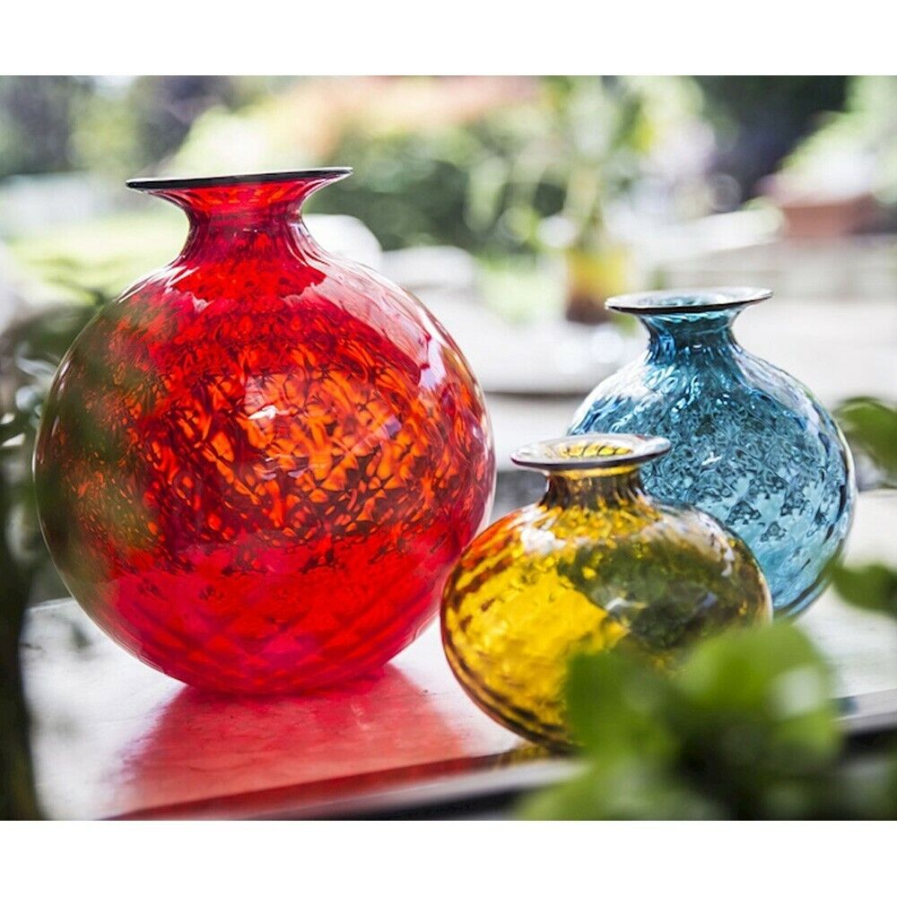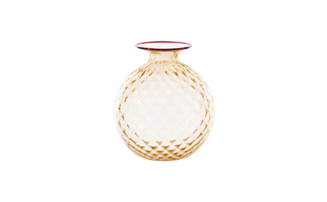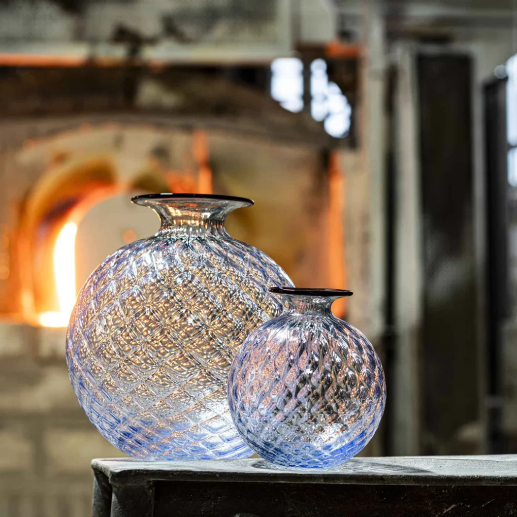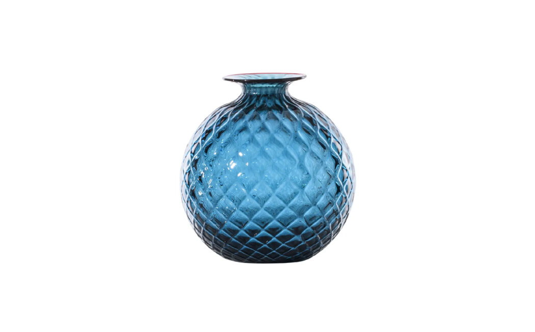 The Monofiori Balloton collection by Venini showcases the exquisite craftsmanship of Murano glassmaking. Introduced in 1970, these vases are renowned for their distinctive “Balloton” texture, achieved through a traditional glassblowing technique that imparts a crosshatched, matelassé effect on the glass surface
