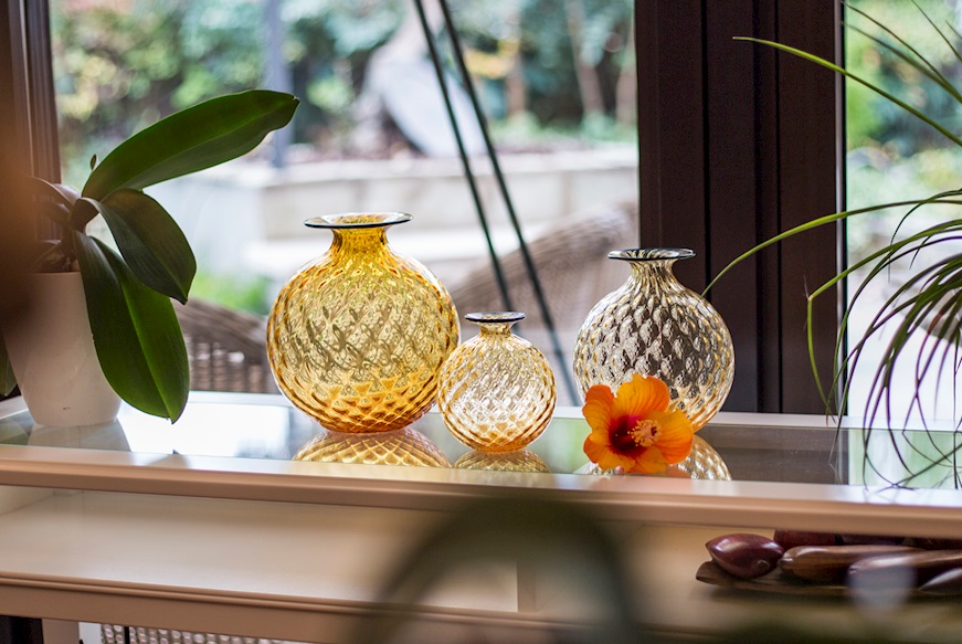 Balloton, the traditional glassblowing technique that recreates the matelassé look on the surface.