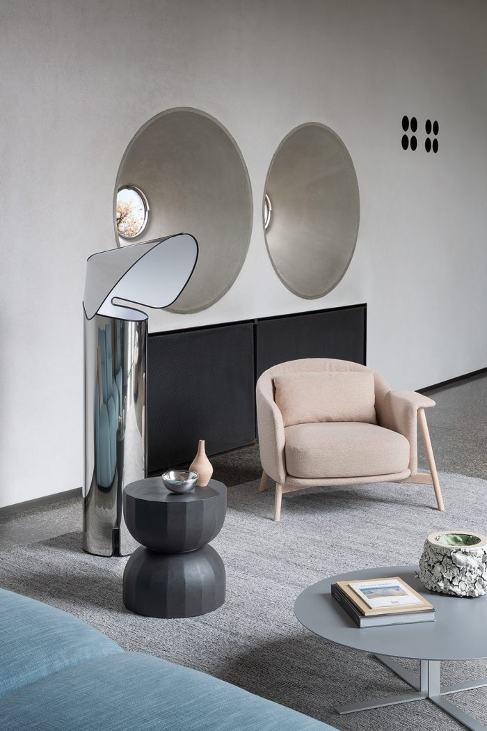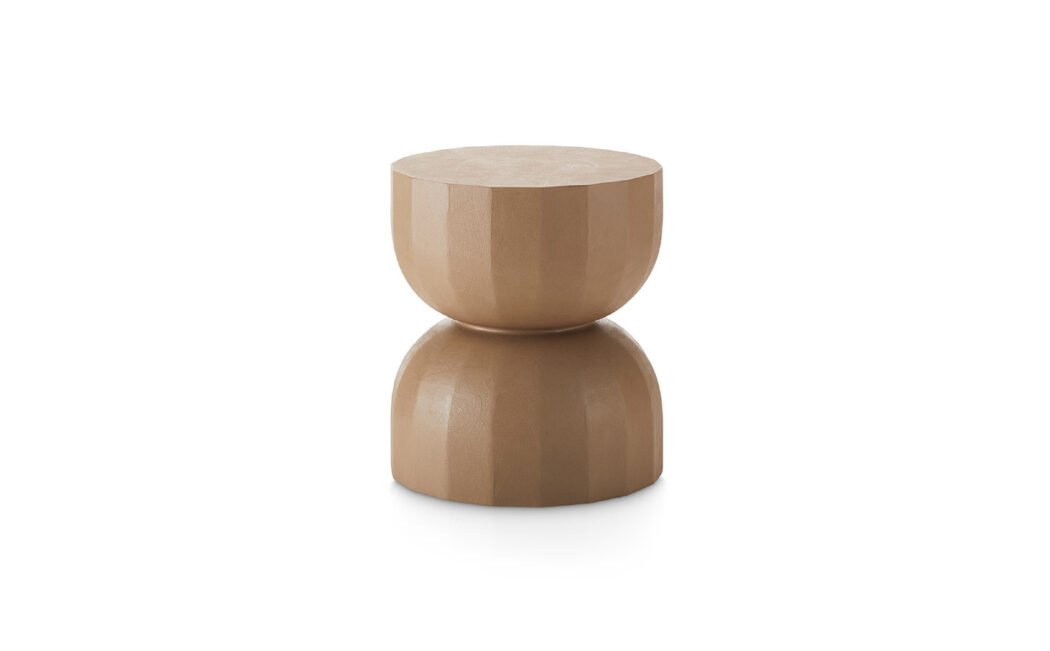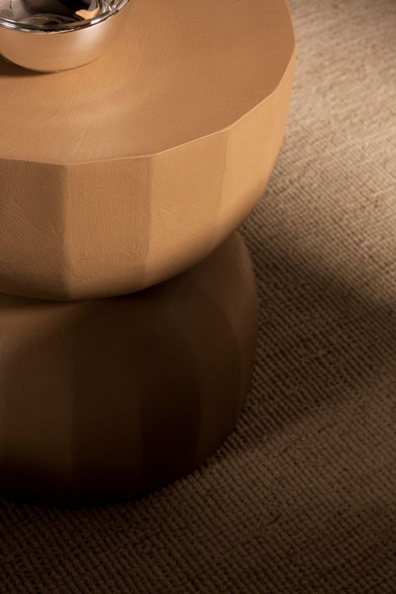 The Teo low table draws inspiration from the architectural archetype of the dome, seeking to evoke its constructive and symbolic significance. Its surface exhibits subtle facets, reminiscent of the segmented structure commonly observed in dome architecture.