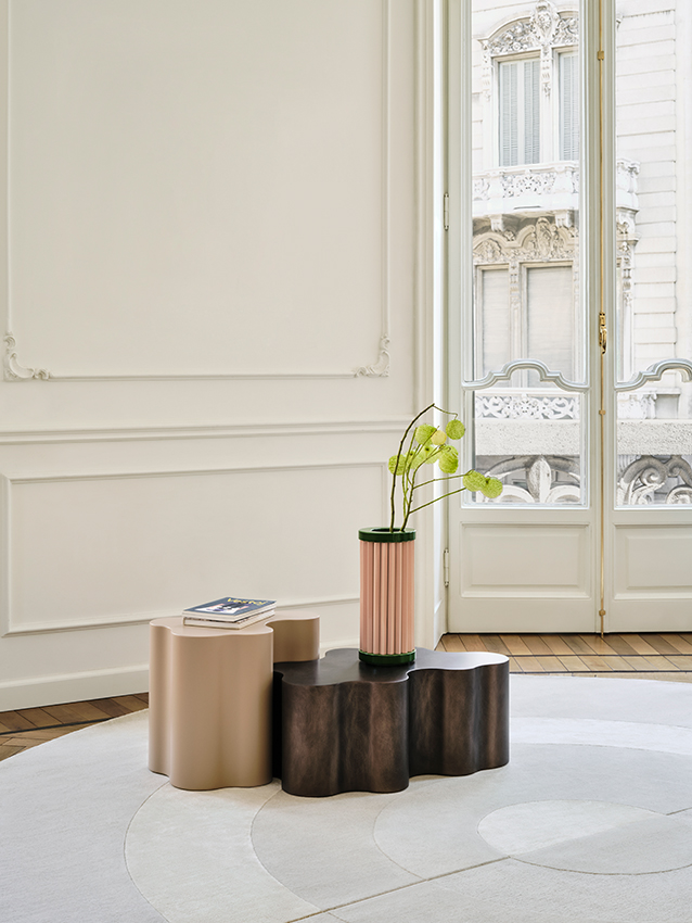 The Teatro Magico Low Table is a stunning sculptural coffee table, inspired by the sinuous base of its namesake table. With two distinct volumes and available in two heights, this piece seamlessly blends functionality with artistic flair.