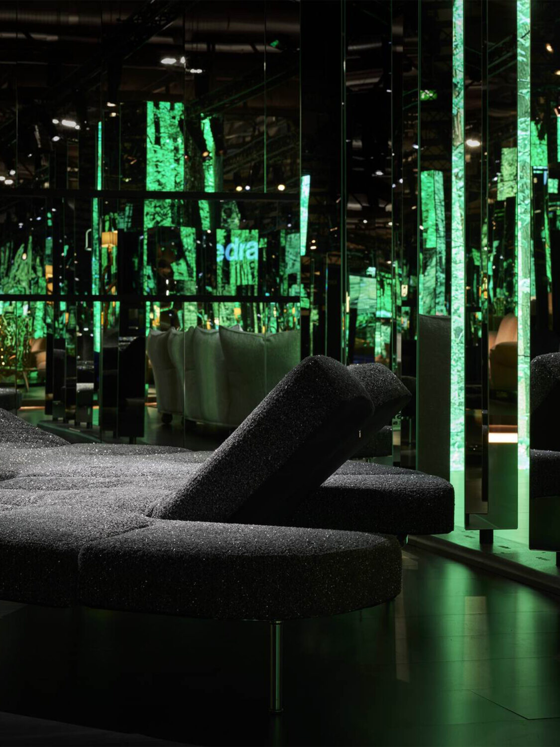 During the event, numerous esteemed Italian and European brands were visited,, as well as the unveiling of their latest products and innovations, providing an immersive experience at the events. Among the highlights were the unveiling of Edra’s exclusive fabric collection inspired by the vibrant colors and reflective properties of the minerals. This collection of materials adorned several pieces at the Edra stand at the Salone del Mobile, showcasing the brand’s commitment to innovation and artistic expression.